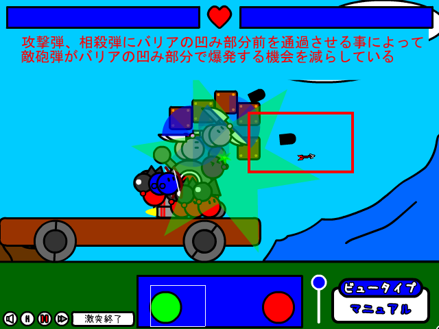 さらに他のユニットの力を借りる方法として攻撃弾や相殺弾にバリアの凹部分前を通過させるという方法があります。