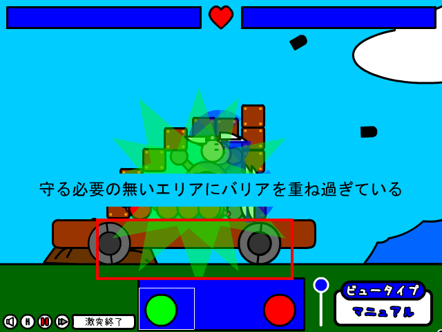 基本的に自群要塞の下から弾丸が飛んでくることは無いので、バリアの下限がY=349より下がると下がった分だけ無駄になります。