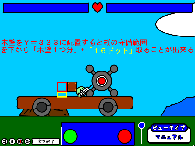 図1の様に木壁をY=349に配置してしまうと縦の守備範囲が下から木壁1つ分しか得ることができません。